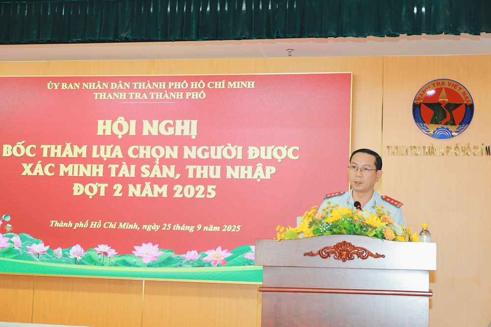 Ngày 25 tháng 9 năm 2025, Thanh tra Thành phố Hồ Chí Minh đã tổ chức Hội nghị bốc thăm, lựa chọn ngẫu nhiên 11 người tại 03 cơ quan, đơn vị được xác minh tài sản, thu nhập đợt 2 năm 2025 nhằm siết chặt công tác kiểm soát tài sản, thu nhập tại các cơ quan, đơn vị trên địa bàn Thành phố.