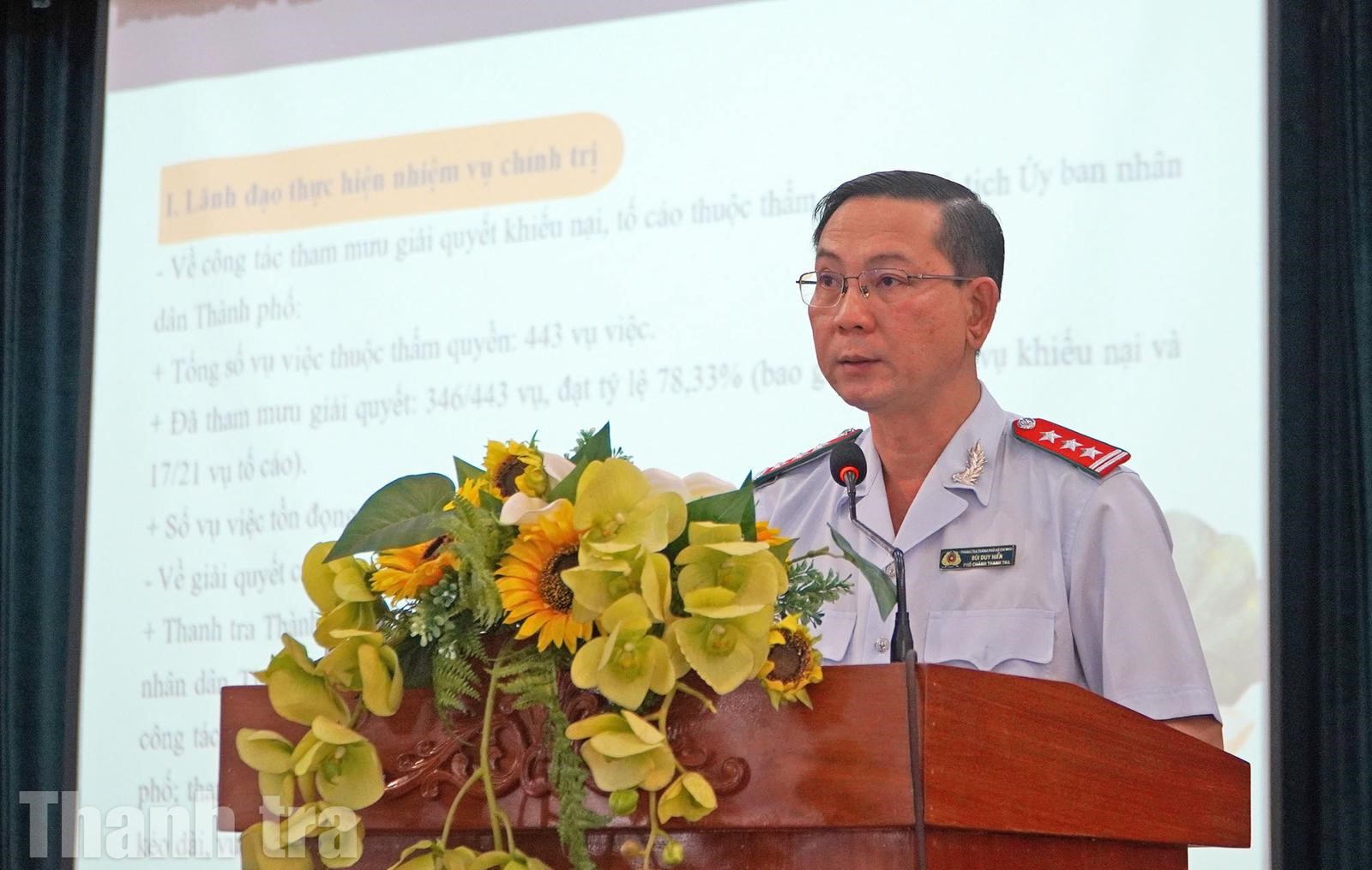 Phó Bí thư Đảng ủy, Phó Chánh Thanh tra TP Hồ Chí Minh Bùi Duy Hiền báo cáo kết quả công tác 9 tháng đầu năm 2025 của Đảng ủy. Ảnh: Cảnh Nhật