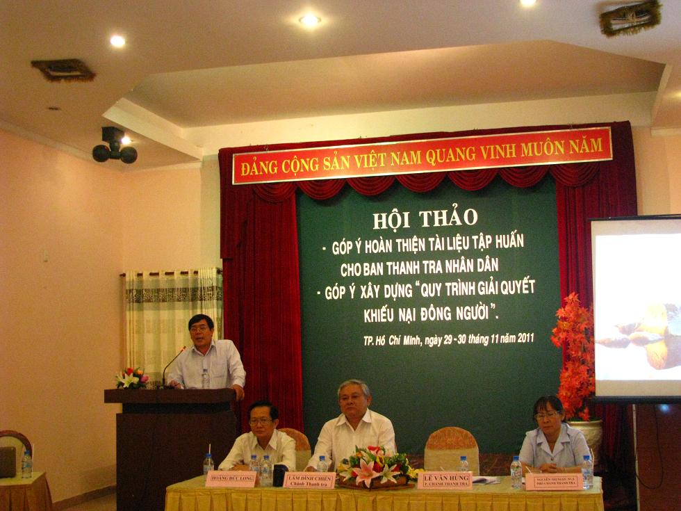 Ngày 30/11/2011, Thanh tra TP.Hồ Chí Minh ( TTTP ) tổ chức Hội thảo góp ý xây dựng Quy trình giải quyết đông người trên địa bàn thành phố, tham dự có lãnh đạo TTTP, lãnh đạo các sở- ban- ngành của thành phố, Chủ tịch UBND các quận- huyện, Chánh Thanh tra các quận- huyện, sở- ngành, đại diện Thanh tra tỉnh Bình Dương, Đồng Nai.