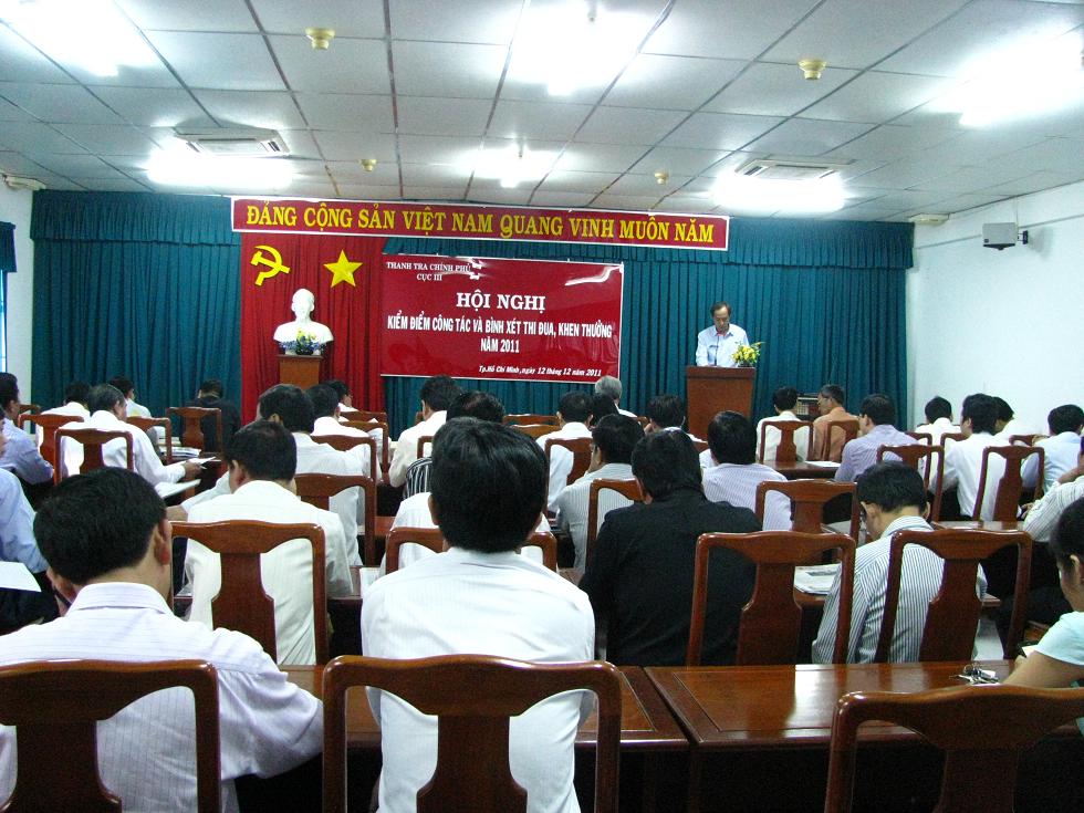 Sáng 12/12/2011, tại Hội trường Thanh tra Chính phủ (TTCP) số 496 Nguyễn Đình Chiểu, quận 3, TP.Hồ Chí Minh, Cục III- TTCP đã tổ chức Hôi nghị kiểm điểm công tác và bình xét thi đua khen thưởng năm 2011, tới dự và chỉ đạo có các đồng chí Lê Thị Thủy, Nguyễn Công Bình- Phó Tổng Thanh tra Chính phủ, lãnh đạo Cục III cùng các cán bộ, công chức Cục III-TTCP.